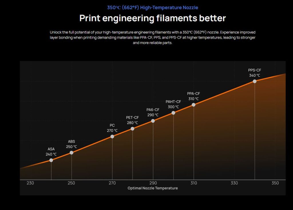 • 350°C Nozzle & 65°C Active Chamber Heating