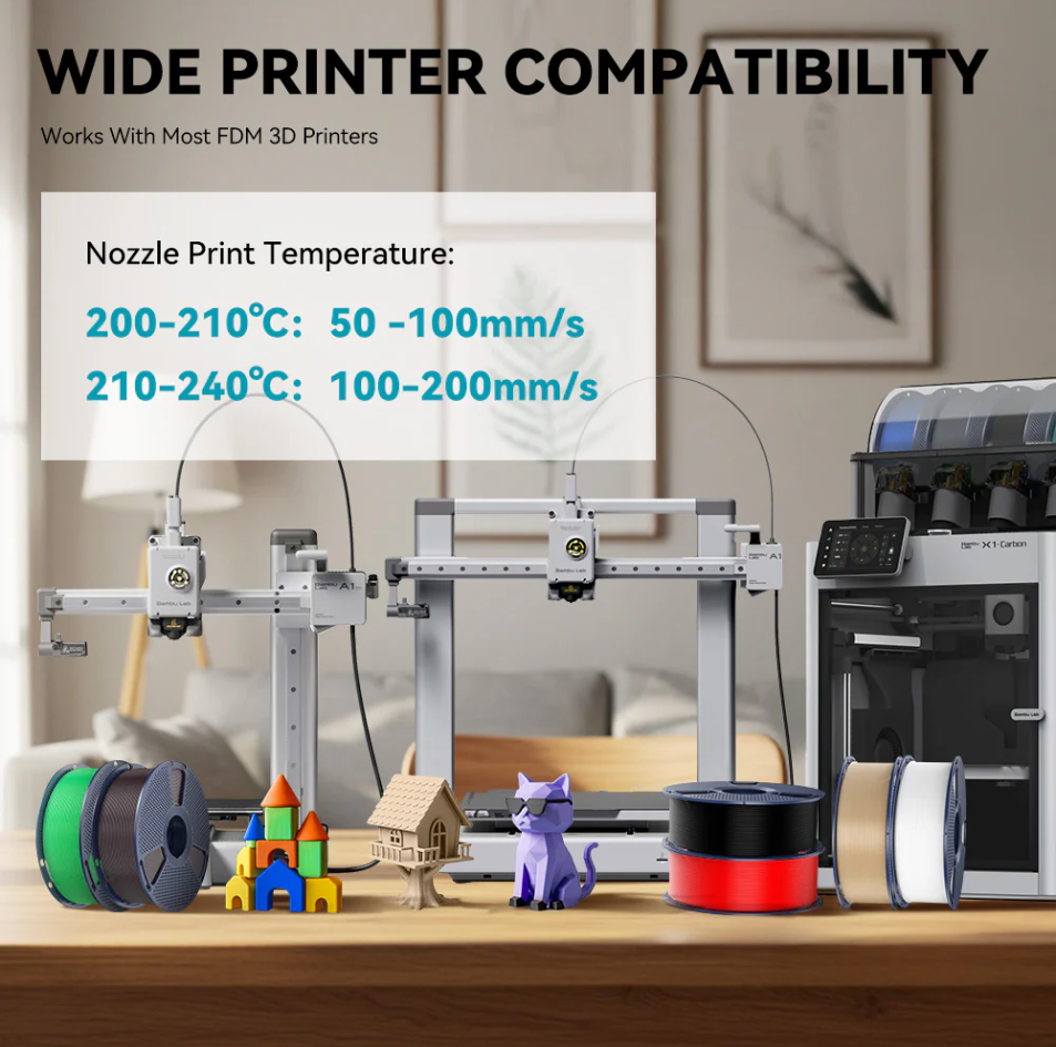 Nozzle Temperature 200–210°C: 50–100 mm/s210–240°C: 100–200 mm/s
